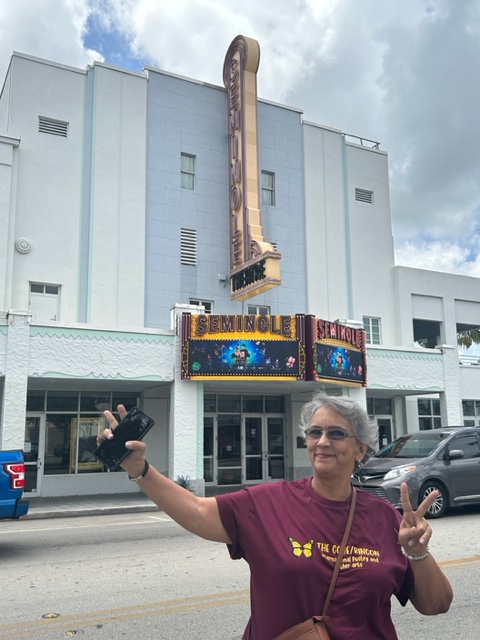 Paty Garza, visitante de México, frente al Centro histórico de artes escénicas de Homestead